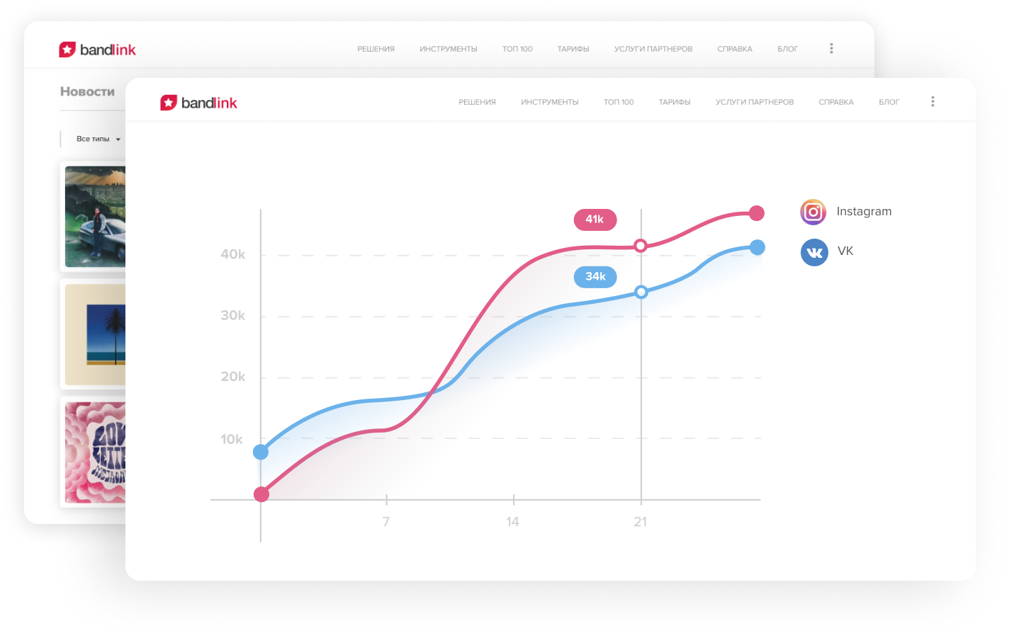 Track key parameters of your social growth and analyze statistics of your BandLink pages, ticket and merch sales, as well as effectiveness of ad campaigns in one place